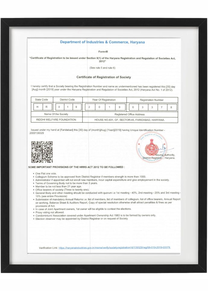 रिद्धि वेलफेयर फाउंडेशन ”एक घरेलू गैर सरकारी संगठन है। हम सभी को जीने, जानने, भयानक बीमारियों से सुरक्षित रहने और गरीब मरीजों, छात्रों, महिला पीड़ितों की मदद करने का काम कर रहे हैं। हम नैतिक और वित्तीय सहायता दे रहे हैं ताकि उन्हें जीवन की बाधाओं से लड़ने में सक्षम बनाया जा सके।